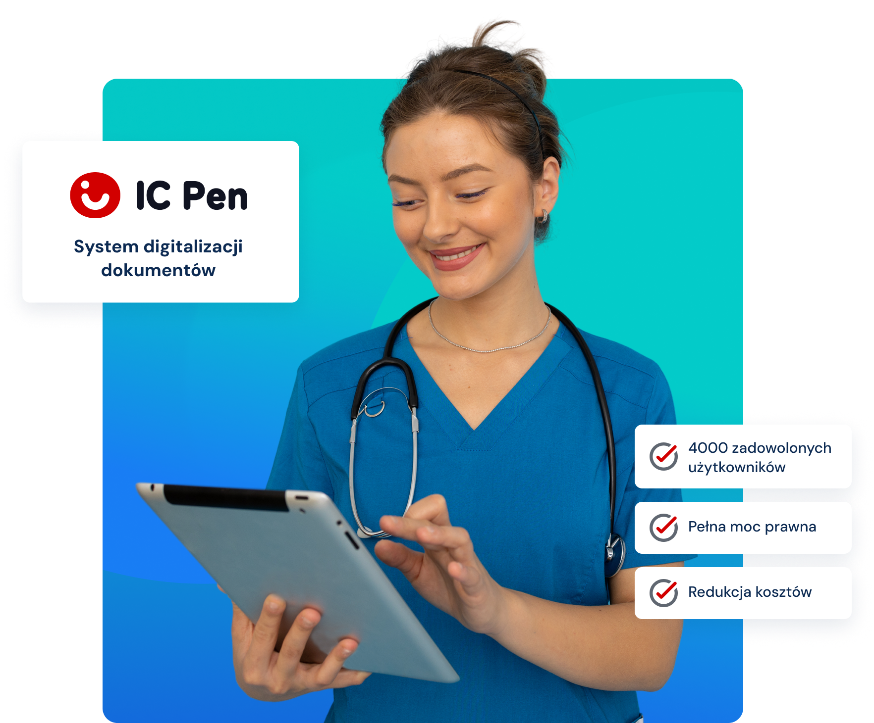 Wdróż innowacyjny podpis elektroniczny oparty na biometrycznej technologii IC Pen w swojej placówce medycznej. To rozwiązanie usprawnia obieg dokumentów medycznych, zapewniając ich pełną zgodność z przepisami prawa. Dzięki temu rozwiązaniu pacjent może złożyć podpis bezpośrednio na tablecie, co zwiększa jego komfort i skraca czas obsługi administracyjnej.